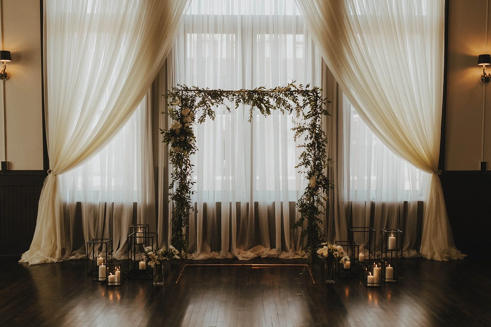 Copper metal wedding ceremony arch. Add your own florals to fit your theme. 5’ wide by 6’ 8” tall. Perfect for your wedding ceremony, reception, or photo backdrop.